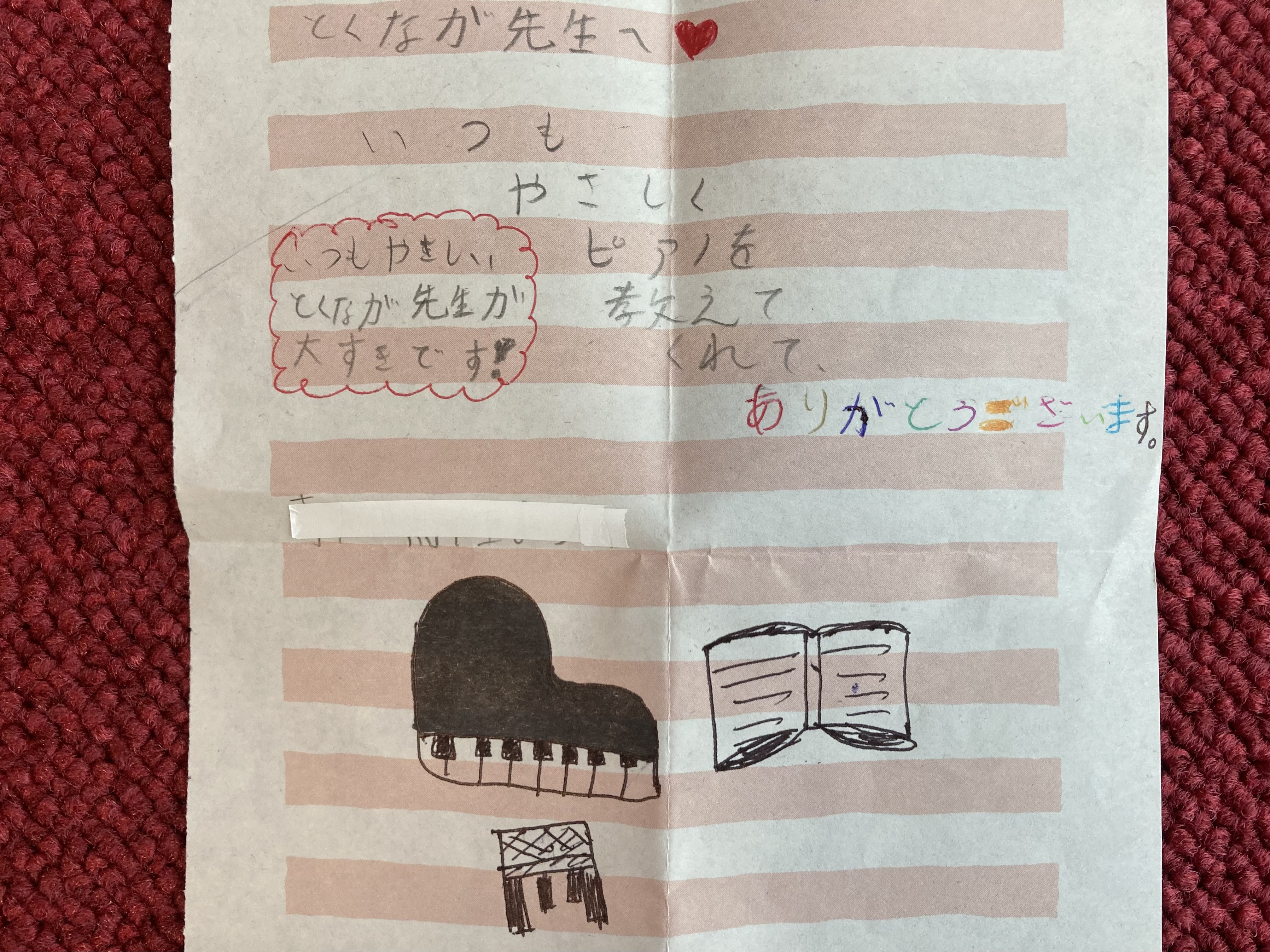 今、娘のピアノのレッスンを見させていただき、こんなに楽しく教えていただけるのなら、私もやめなかったのに…と思いました。
