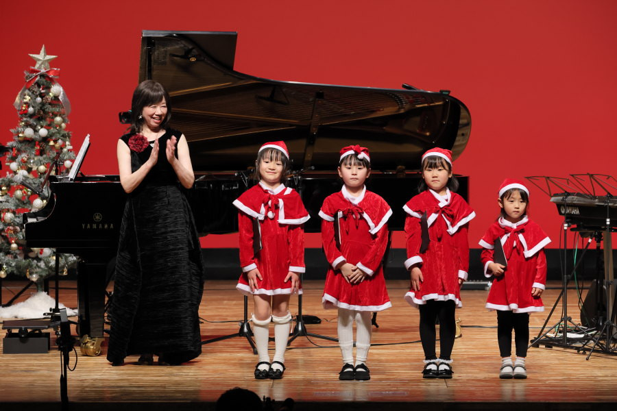 今回の発表会は、珍しくクリスマスシーズンに当たっていたため、舞台にはクリスマスツリー🌲が点滅し、選曲もクリスマスにちなんだ曲を多く取り入れました。